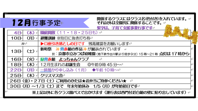 今月の行事予定です